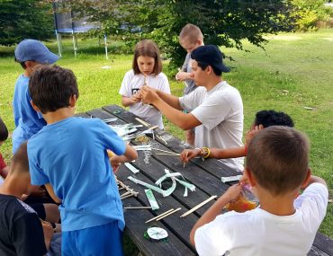 Czwarty podział to grupy warsztatowe. Te grupki mogą być codziennie inne i mieszane wiekowo. Na tradycyjnych obozach Multi Camp, bywa że 6 latkowie biorą udział w warsztacie razem z 16 latkami, co właśnie tworzy nasz klimat i rodzinną atmosferę 🙂