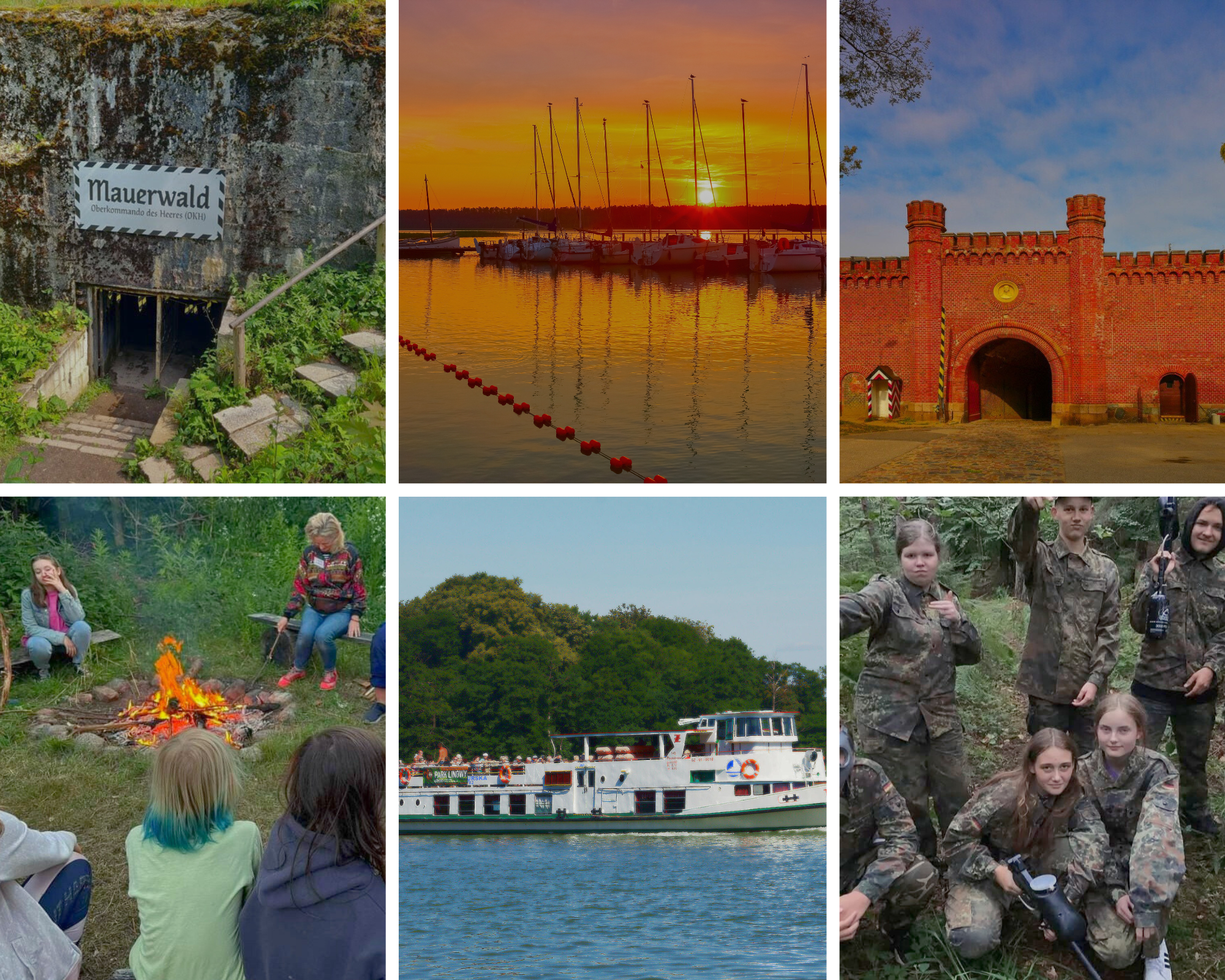 W programie: gry terenowe, zajęcia sportowe, rejs statkiem po Wielkich Jeziorach, zwiedzanie Twierdzy Boyen i bunkrów w Mamerkach, program wieczorny (ognisko, dyskoteka, karaoke, wieczór gier itp.)