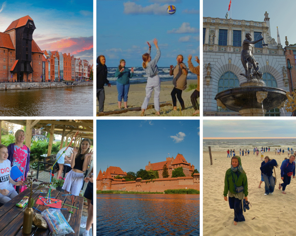 W programie: autorska gra planszowo-terenowa z elementami historii i kultury regionu, zwiedzanie w formie gry, Malborka, Gdańska, Krynicy Morskiej, rejs statkiem, program wieczorny.