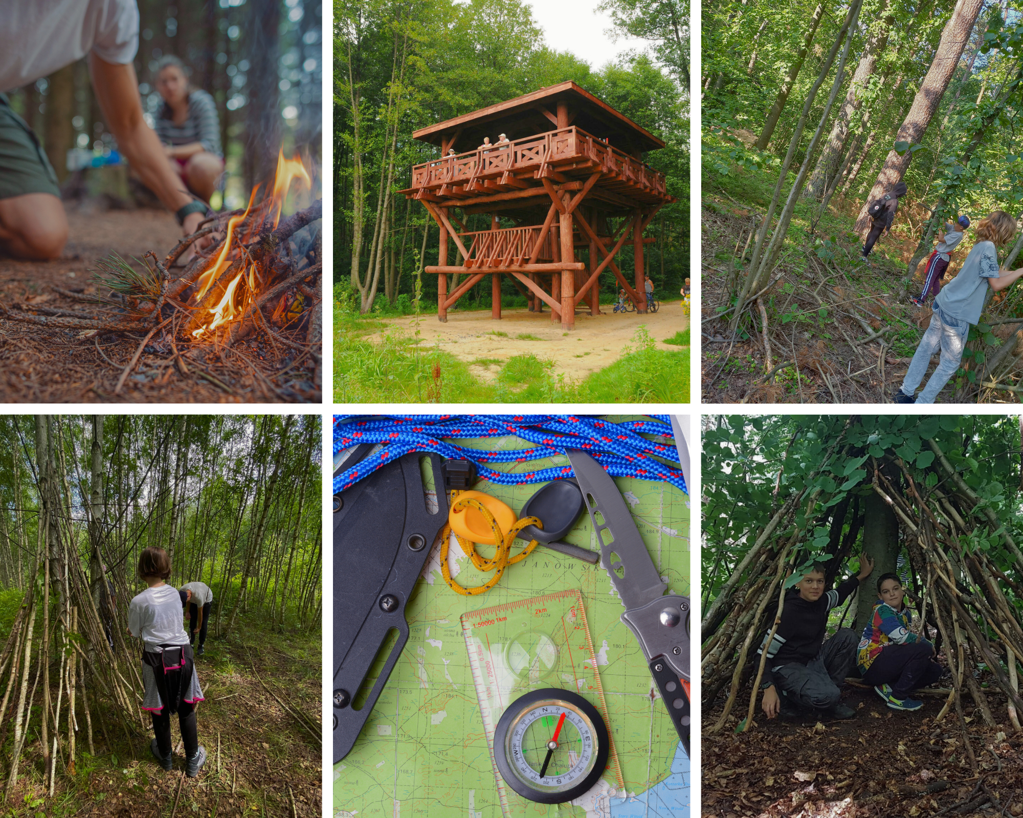 Przetrwanie w lesie, budowanie obozów, orientacja w terenie i inne umiejętności